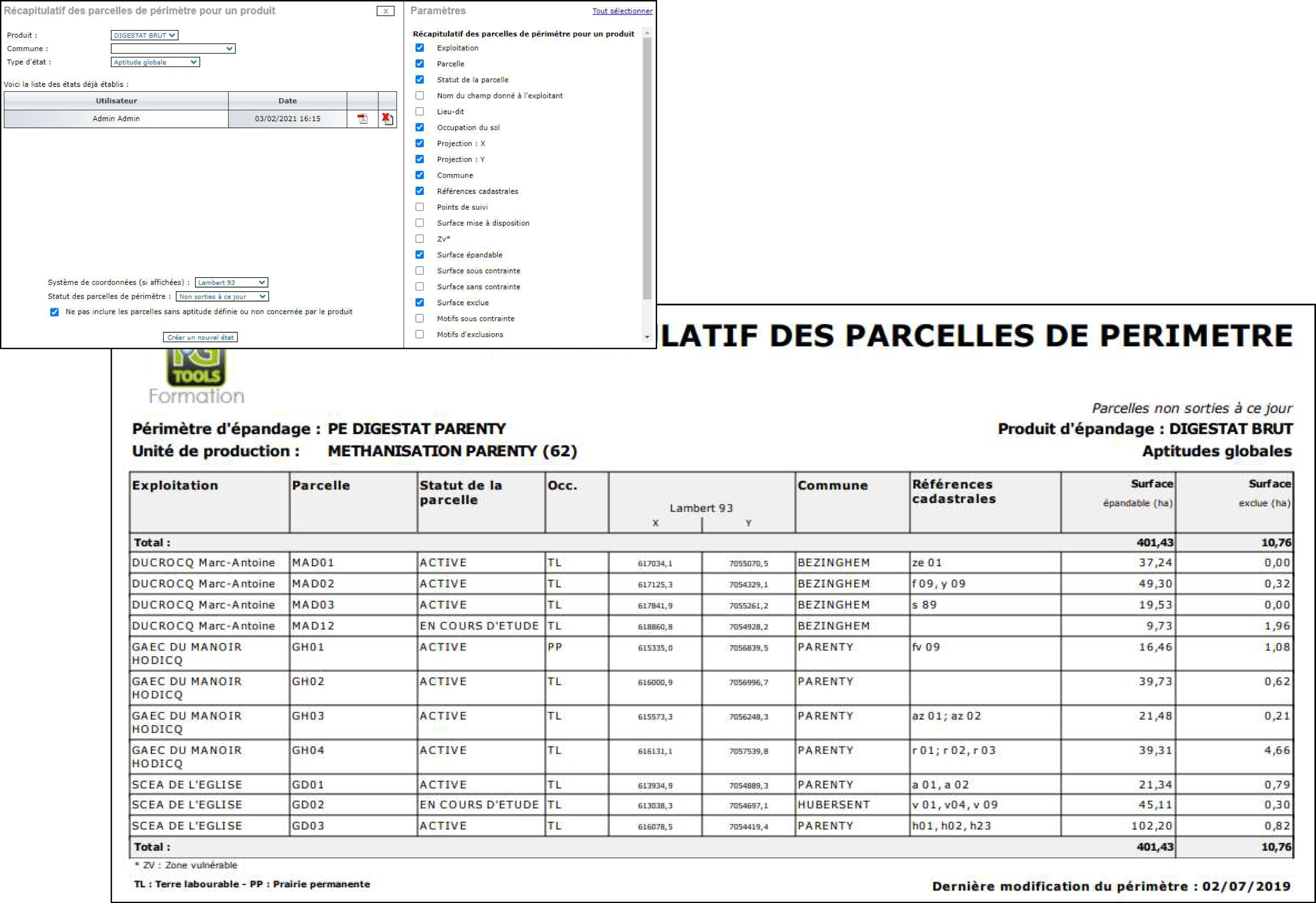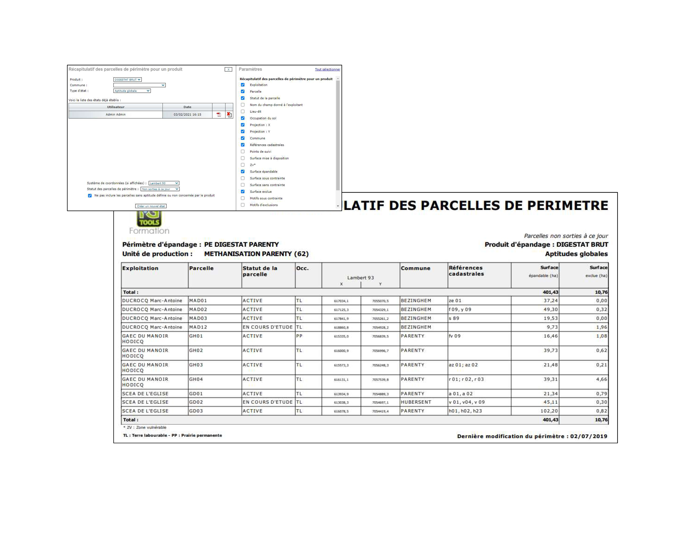 Avec ERMES vous pouvez valoriser toutes les données saisies au travers des près de 70 éditions possibles. Les formats sont divers et variés : PDF, Excel, shapefiles, ... Les éditions majeures sont paramétrables, vous pouvez ainsi vous-même définir les colonnes que vous souhaitez voir apparaitre afin de fournir la bonne information aux services de l’Etat suivant votre dossier, aux exploitants agricoles ou à l’ensemble de vos collaborateurs.