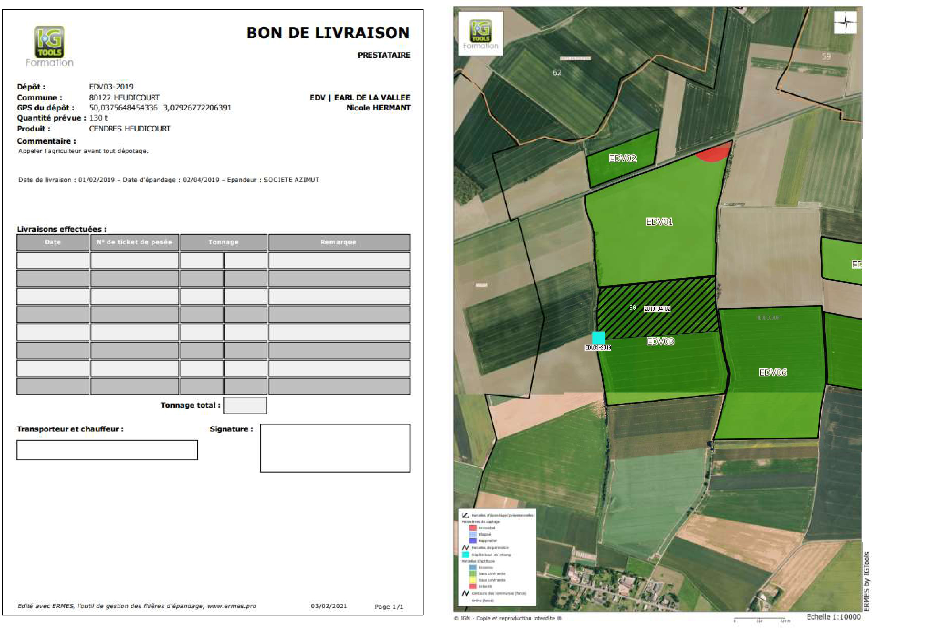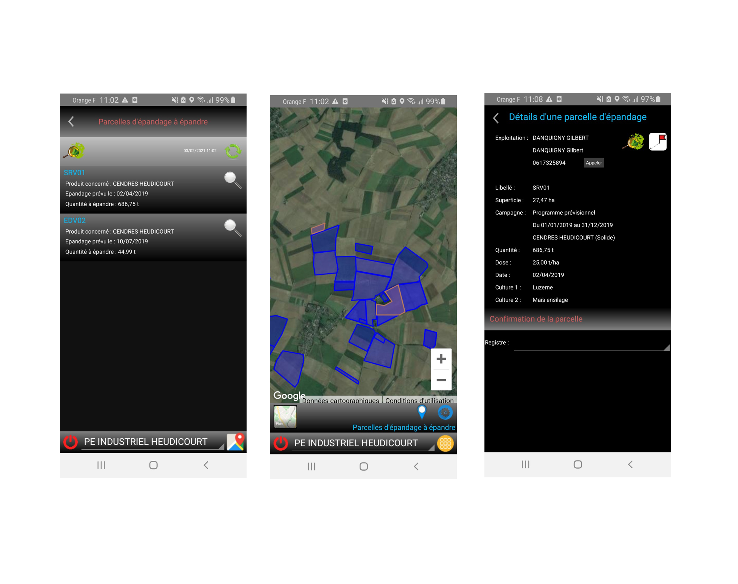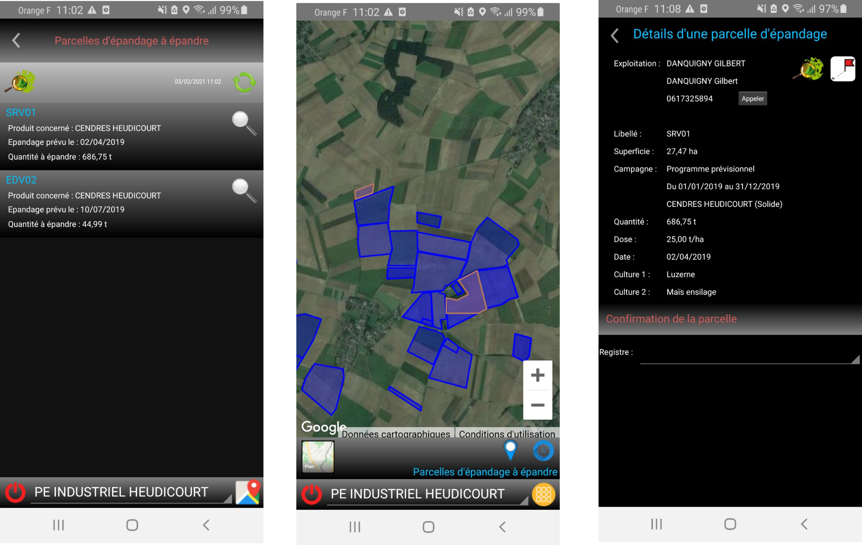 Sur le même modèle que pour le transporteur vous pouvez organiser le travail de vos prestataires d’épandage. Ceux-ci se retrouvent aussi avec des dépôts désormais à épandre et un planning d’organisation sur la base de tableaux et de cartes. Il peut retrouver sur son applicatif ERMES Mobile son espace réservé avec la liste des parcelles à épandre et leur localisation. La saisie de ces éléments se font au champ, l’administrateur en central ERMES, pouvant suivre et valider les informations provenant du terrain.
