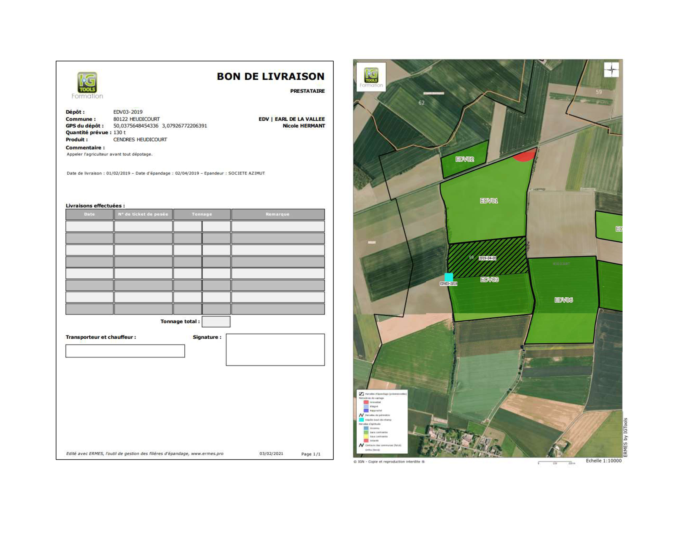 Basée sur votre Prévisionnel vous pouvez ensuite organiser la logistique des dépôts et des parcelles à livrer. Des tonnages sont ainsi engagés, et une organisation avec le prestataire de transport organisée. Des tableaux et cartes récapitulatifs permettent au transporteur de visualiser son planning de livraison et les lieux de dépotage. Le transporteur peut enregistrer ses livraisons (date, poids, …) et ainsi mettre à jour ses tableaux de bords. Il retrouve l’ensemble de ces fonctionnalités sur ERMES Mobile, directement sur son smartphone.