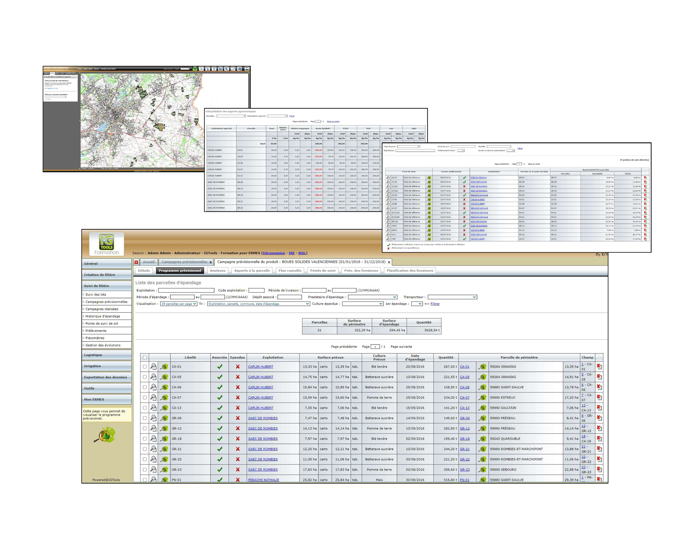 Vous pouvez réaliser facilement avec ERMES votre Prévisionnel d’épandage. Prévoyez l’épandage sur certaines parcelles, ERMES vous alerte sur les conditions liées aux sols et aux analyses, ainsi que sur le respect de la période de retour à la parcelle. Vous pouvez aussi renseigner des analyses à prendre en compte pour ces apports prévisionnels et vérifier ainsi le respect des apports en éléments fertilisants (N, P, K, Ca et Mg) ainsi que le respect des flux cumulés sur 10 ans en intégrant ces apports prévisionnels. Ainsi, vous êtes pleinement accompagné par l’outil sur le respect des contraintes règlementaires. Vous pouvez enfin éditer facilement vos documents pour vos services instructeurs mais aussi planifier/organiser votre campagne d’épandage avec vos collaborateurs.